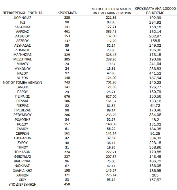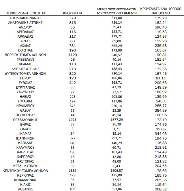 Υπενθυμίζεται πως τα περισσότερα σε αριθμό περιστατικά που είχε καταγράψει ο ΕΟΔΥ μέχρι σήμερα σε μία ημέρα ανακοινώθηκαν την Τρίτη 4 Ιανουαρίου 2022, όταν εντοπίστηκαν 50.126 περιπτώσεις σε ένα 24ωρο. Επίσης, ο μεγαλύτερος αριθμός θανάτων εξαιτίας του ιού σε ένα 24ωρο καταγράφηκε το Σάββατο 14 Δεκεμβρίου 2021, όταν έχασαν τη ζωή τους 130 ασθενείς.