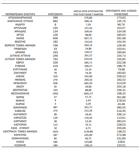 Υπενθυμίζεται πως τα περισσότερα σε αριθμό περιστατικά που είχε καταγράψει ο ΕΟΔΥ μέχρι σήμερα σε μία ημέρα ανακοινώθηκαν την Τρίτη 4 Ιανουαρίου 2022, όταν εντοπίστηκαν 50.126 περιπτώσεις σε ένα 24ωρο. Επίσης, ο μεγαλύτερος αριθμός θανάτων εξαιτίας του ιού σε ένα 24ωρο καταγράφηκε το Σάββατο 14 Δεκεμβρίου 2021, όταν έχασαν τη ζωή τους 130 ασθενείς.