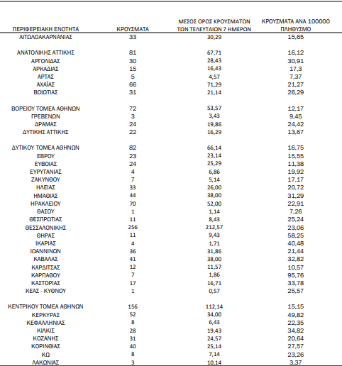 Η γεωγραφική κατανομή των περιστατικών παρουσιάζεται στον παρακάτω πίνακα: