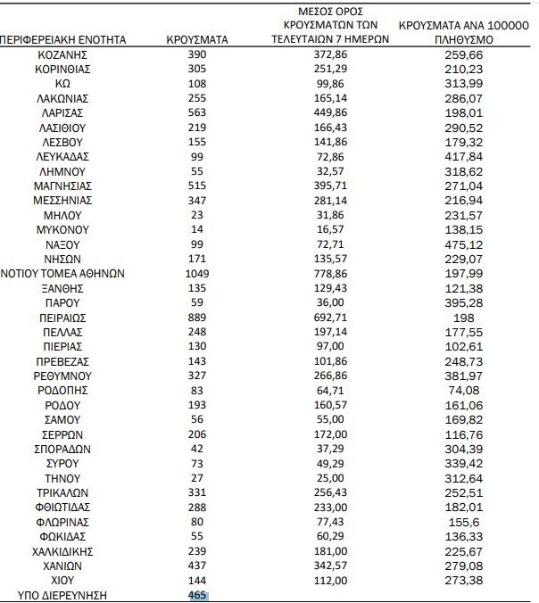 Στην Αττική οι μολύνσεις έφθασαν τις 8.453. Στη δεύτερη θέση η Θεσσαλονίκη με 2.191.