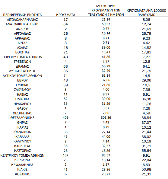 Υπενθυμίζεται πως τα περισσότερα σε αριθμό περιστατικά που έχει καταγράψει ο ΕΟΔΥ σε μία ημέρα ανακοινώθηκαν στις 24 Αυγούστου 2021, όταν εντοπίστηκαν 4.608 περιπτώσεις σε ένα 24ωρο. Επίσης, ο μεγαλύτερος αριθμός θανάτων εξαιτίας του ιού σε ένα 24ωρο καταγράφηκε το Σάββατο 28 Νοεμβρίου, όταν έχασαν τη ζωή τους 121 ασθενείς.