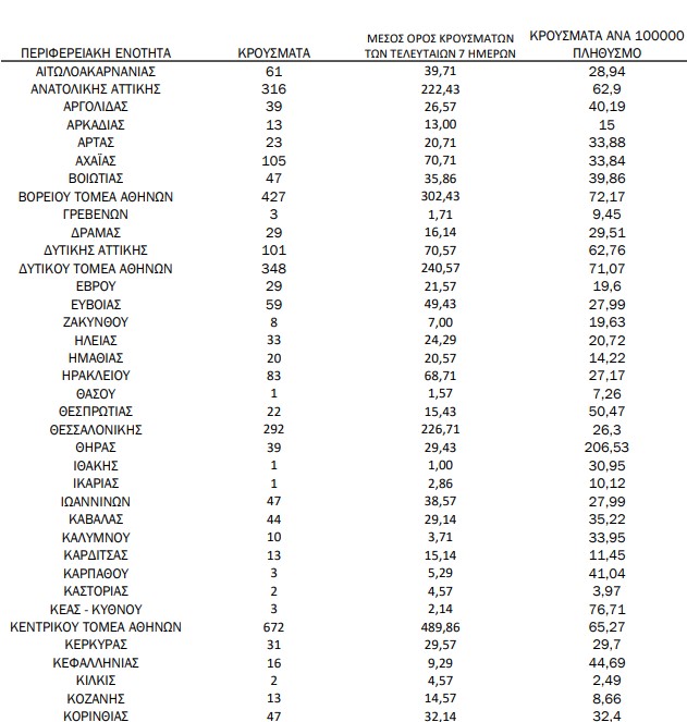 Η γεωγραφική κατανομή των περιστατικών είναι η ακόλουθη: