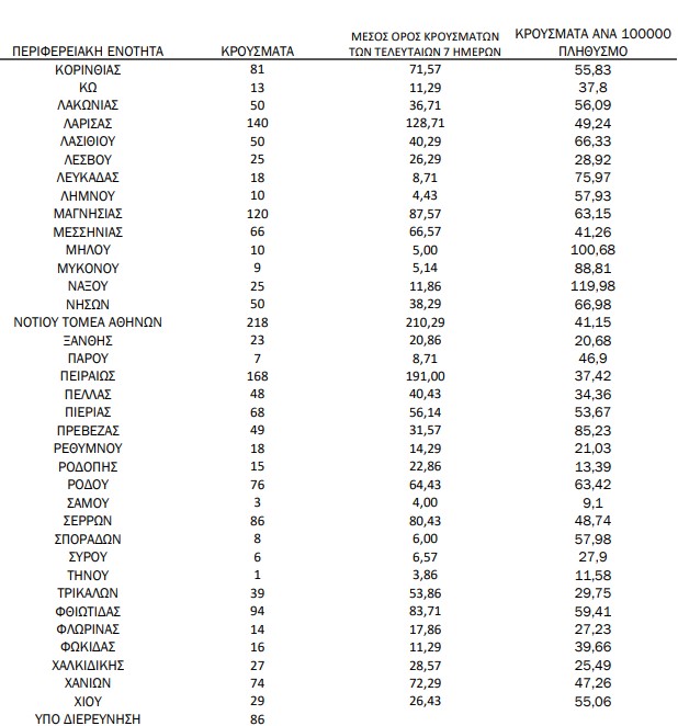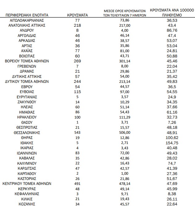 Υπενθυμίζεται πως τα περισσότερα σε αριθμό περιστατικά που είχε καταγράψει ο ΕΟΔΥ μέχρι σήμερα σε μία ημέρα ανακοινώθηκαν την Τρίτη 4 Ιανουαρίου 2022, όταν εντοπίστηκαν 50.126 περιπτώσεις σε ένα 24ωρο. Επίσης, ο μεγαλύτερος αριθμός θανάτων εξαιτίας του ιού σε ένα 24ωρο καταγράφηκε το Σάββατο 14 Δεκεμβρίου 2021, όταν έχασαν τη ζωή τους 130 ασθενείς.