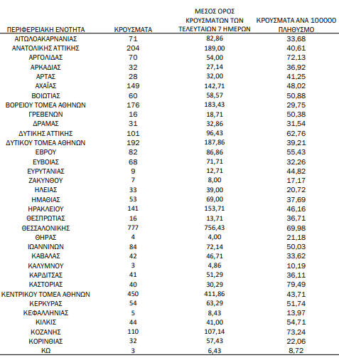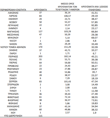 Υπενθυμίζεται πως τα περισσότερα σε αριθμό περιστατικά που είχε καταγράψει ο ΕΟΔΥ μέχρι σήμερα σε μία ημέρα ανακοινώθηκαν την Τρίτη 9 Νοεμβρίου 2021, όταν εντοπίστηκαν 8.613  περιπτώσεις σε ένα 24ωρο. Επίσης, ο μεγαλύτερος αριθμός θανάτων εξαιτίας του ιού σε ένα 24ωρο καταγράφηκε το Σάββατο 28 Νοεμβρίου 2020, όταν έχασαν τη ζωή τους 121 ασθενείς.