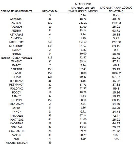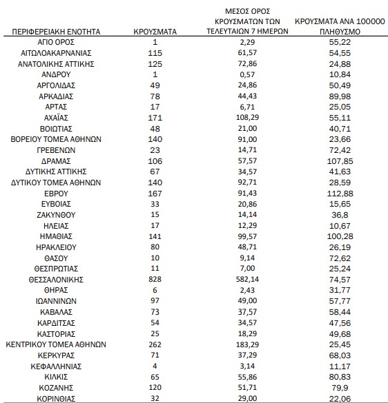 Σήμερα, Δευτέρα 1 Νοεμβρίου, ο Εθνικός Οργανισμός Δημόσιας Υγείας ανακοίνωσε 5.449 νέα περιστατικά Covid-19 στην Ελλάδα. Παράλληλα, σύμφωνα με την ενημέρωση του ΕΟΔΥ, 430 ασθενείς βρίσκονται διασωληνωμένοι στις ΜΕΘ, ενώ έχουν καταγραφεί 52 νέοι θάνατοι.