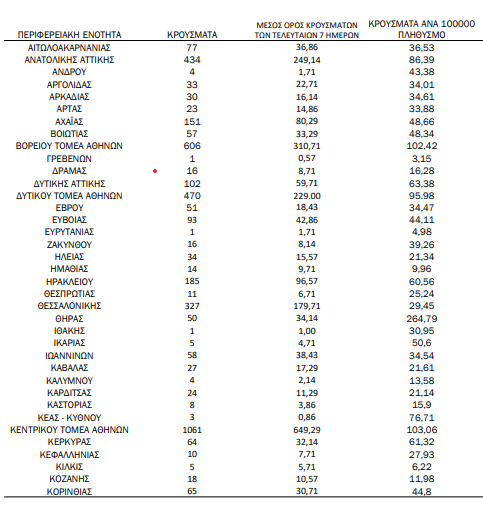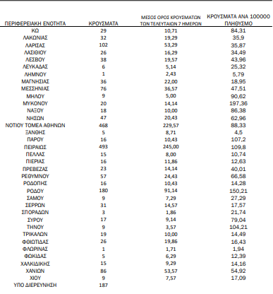 Υπενθυμίζεται, πως τα περισσότερα σε αριθμό περιστατικά που είχε καταγράψει ο ΕΟΔΥ μέχρι σήμερα σε μία ημέρα ανακοινώθηκαν την Τρίτη 4 Ιανουαρίου 2022, όταν εντοπίστηκαν 50.126 περιπτώσεις σε ένα 24ωρο. Επίσης, ο μεγαλύτερος αριθμός θανάτων εξαιτίας του ιού σε ένα 24ωρο καταγράφηκε το Σάββατο 14 Δεκεμβρίου 2021, όταν έχασαν τη ζωή τους 130 ασθενείς.