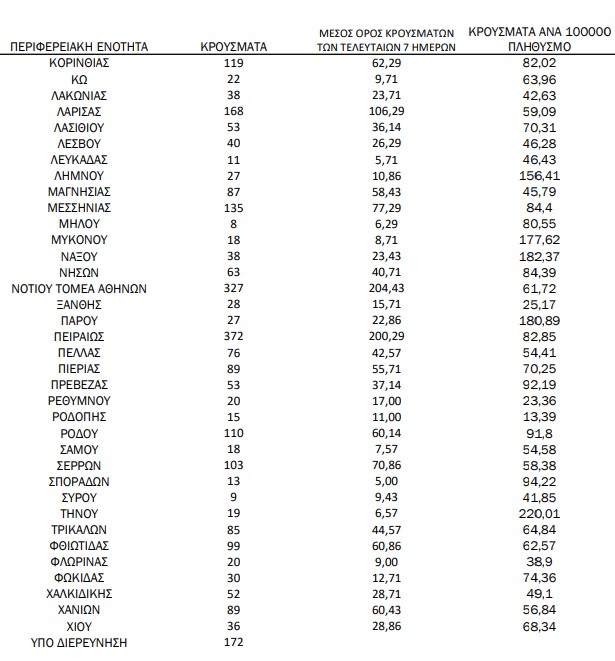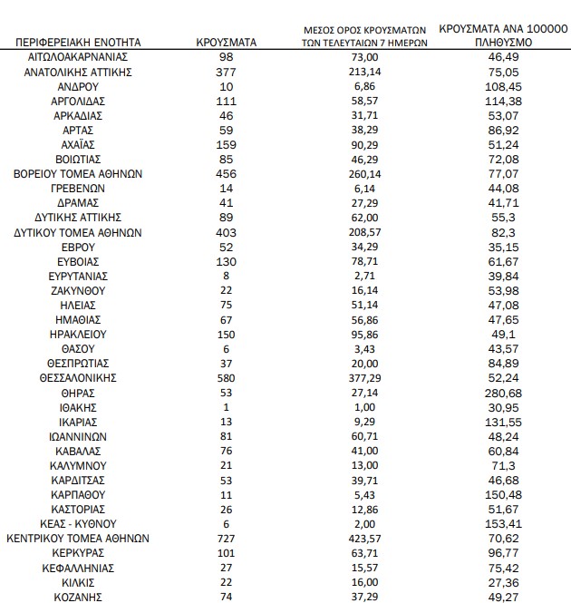 Υπενθυμίζεται πως τα περισσότερα σε αριθμό περιστατικά που είχε καταγράψει ο ΕΟΔΥ μέχρι σήμερα σε μία ημέρα ανακοινώθηκαν την Τρίτη 4 Ιανουαρίου 2022, όταν εντοπίστηκαν 50.126 περιπτώσεις σε ένα 24ωρο. Επίσης, ο μεγαλύτερος αριθμός θανάτων εξαιτίας του ιού σε ένα 24ωρο καταγράφηκε το Σάββατο 14 Δεκεμβρίου 2021, όταν έχασαν τη ζωή τους 130 ασθενείς.