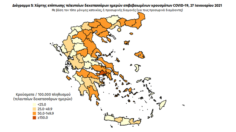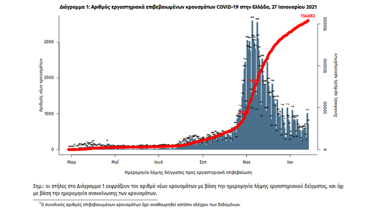 Σήμερα, Τετάρτη 27 Ιανουαρίου, ο Εθνικός Οργανισμός Δημόσιας Υγείας ανακοίνωσε 858 νέα κρούσματα Covid-19 στην Ελλάδα.