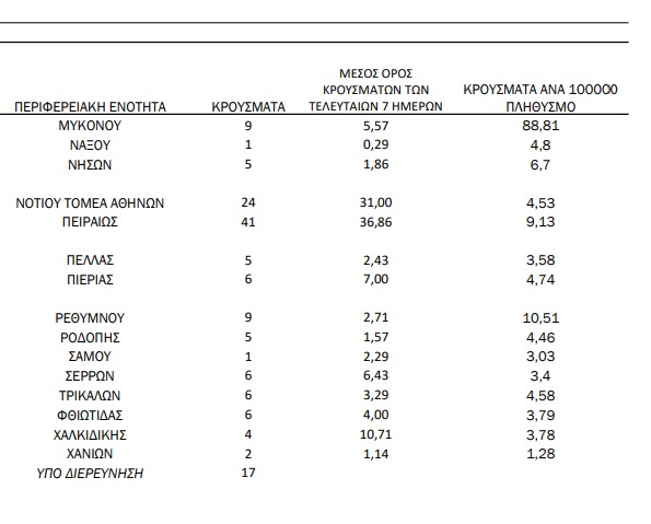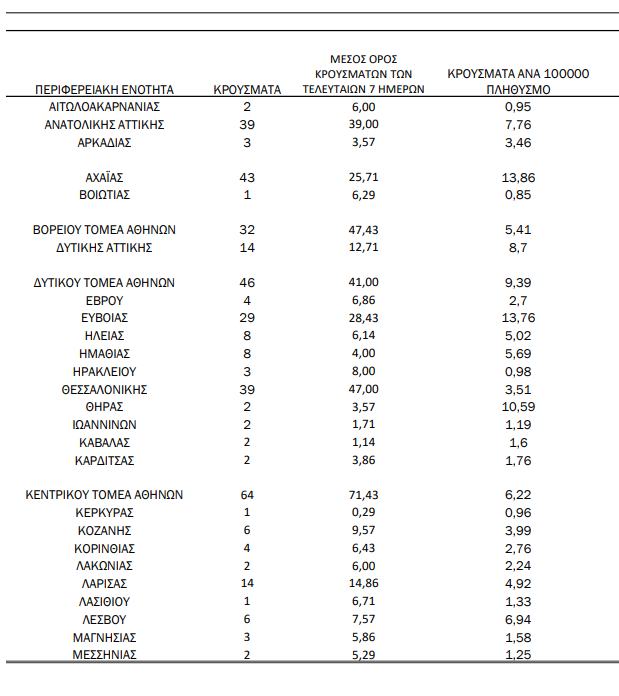 Σημ.2: αναγράφονται μόνο οι ΠΕ στις οποίες έχουν καταγραφεί κρούσματα κατά τη σημερινή αναφορά