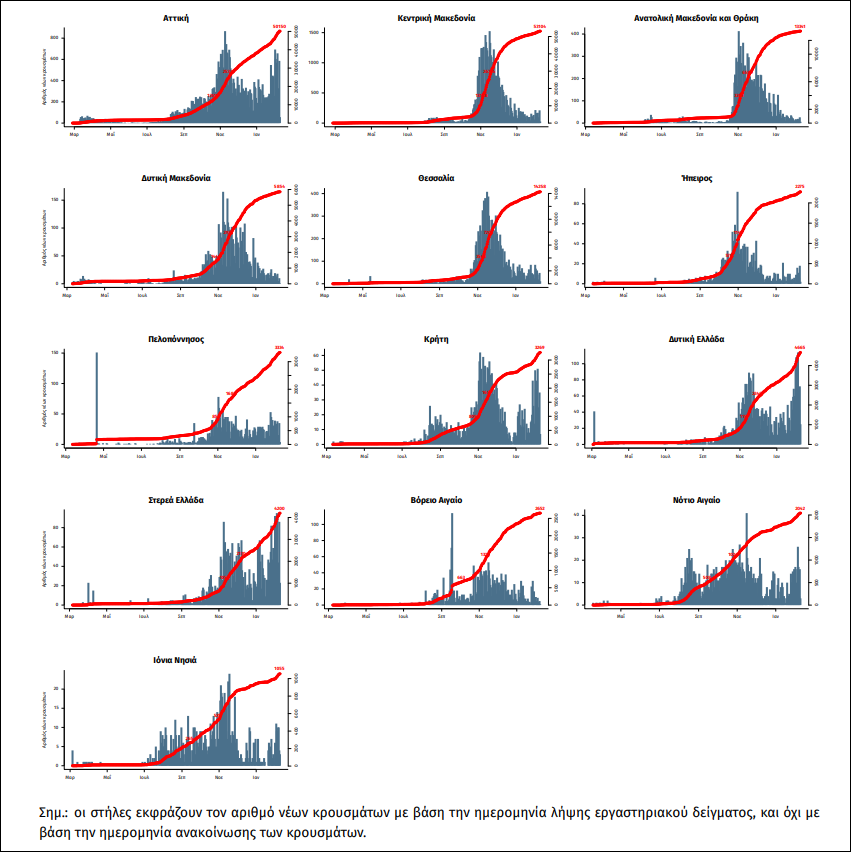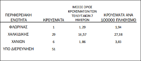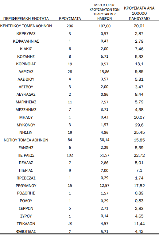 Σημ.2: αναγράφονται μόνο οι ΠΕ στις οποίες έχουν καταγραφεί κρούσματα κατά τη σημερινή αναφορά