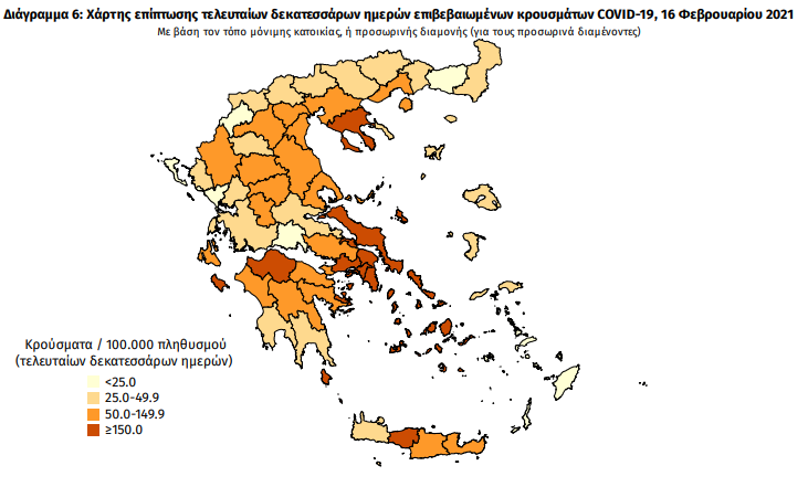 Αναλυτικά η ανακοίνωση του ΕΟΔΥ την Τρίτη 16 Φεβρουαρίου: