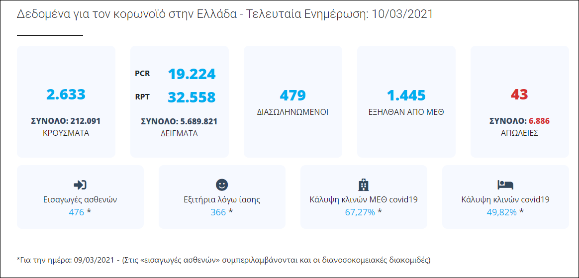 Δεδομένα έως 10 Μαρτίου 2021, ώρα 15:00