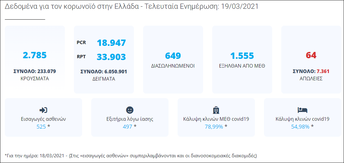 Δεδομένα έως 19 Μαρτίου 2021, ώρα 15:00