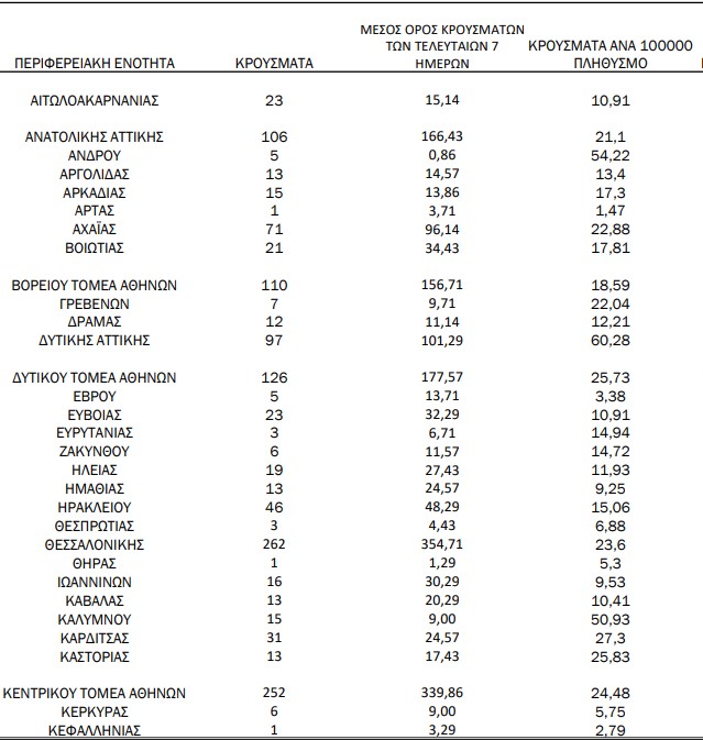 Τα κρούσματα στις περιφερειακές ενότητες που ανήκουν στην Αττική:
