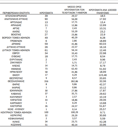 Η γεωγραφική κατανομή των κρουσμάτων καταγράφεται ως εξής: