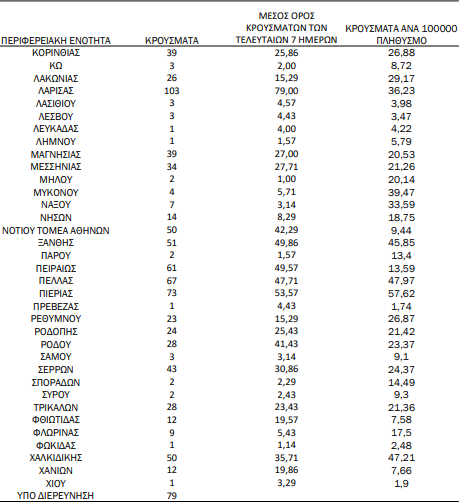 Η γεωγραφική κατανομή των κρουσμάτων καταγράφεται ως εξής: