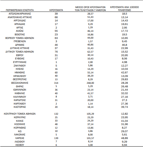 Η γεωγραφική κατανομή των περιστατικών παρουσιάζεται παρακάτω: