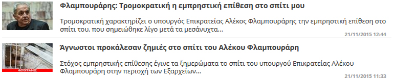 Έτσι λοιπόν το βράδυ της Παρασκευής, και μία μέρα μετά την υπερψήφιση των πρώτων προαπαιτούμενων στη Βουλή για την εξασφάλιση μίας ακόμα δόσης, επισκεφθήκαμε το υπερπολυτελές νεοκλασσικό του Α. Φλαμπουράρη υπουργού επικρατείας (στην πρώτη φορα αριστερα κυβέρνηση της χώρας), στην οδό Βουλγαροκτόνου στα Εξάρχεια, πυρπολώντας την είσοδό του. Μια πράξη συμβολική, αλλά ταυτοχρόνως ουσιαστική. Κι αν ο ίδιος, ο σύμβουλος του Αλέξη Τσίπρα και για πολλούς άτυπος- σκιώδης πρωθυπουργός, μιλά για πράξη τρομοκράτησής του και στοχοποίησή του από «σκοτεινά κέντρα» και άλλες γελοιότητες, του απαντάμε πως μια συμβολική ενέργεια δεν είναι τίποτα μπροστά σ’ αυτά για τα οποία ο ίδιος και η κυβέρνηση που συμμετέχει, είναι υπεύθυνοι. Τρομοκράτηση είναι η ισοπέδωση όλων των εργασιακών δικαιωμάτων (όσων είχαν απομείνει), η απαξίωση της ζωής με την κάλυψη βασικών βιοτικών αναγκών πλέον να είναι εφικτή από ολοένα και μικρότερα κομμάτια του πληθυσμού, οι αυτοκτονίες λόγω χρεών, η καταστολή με αριστερό προσωπείο, η αυξανόμενη ποινικοποίηση των αντιστάσεων και η προάσπιση με όλα τα μέσα του καπιταλισμού και των φιλελεύθερων απαιτήσεων.