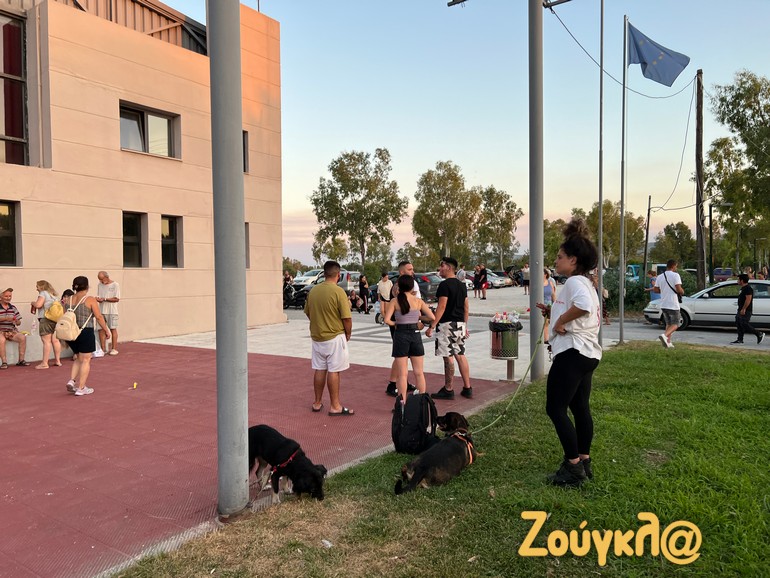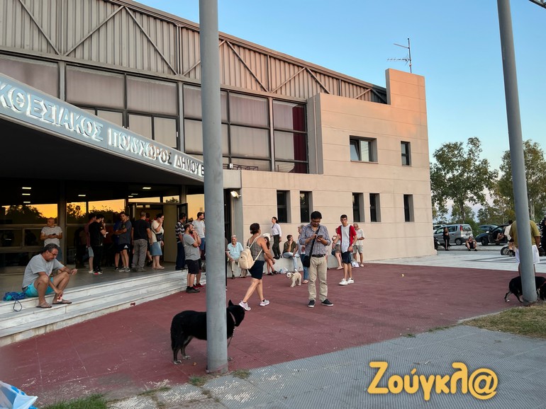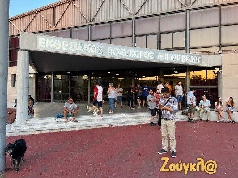 Στους χώρους όπου θα διανυκτερεύσουν προσωρινά περιμένουν να μεταφερθούν οι κάτοικοι της Νέας Αγχιάλου που αναγκάστηκαν να εγκαταλείψουν τα σπίτια τους καθώς η πυρκαγιά που μαίνεται στην περιοχή πλησίαζε απειλητικά τους οικισμούς τους.