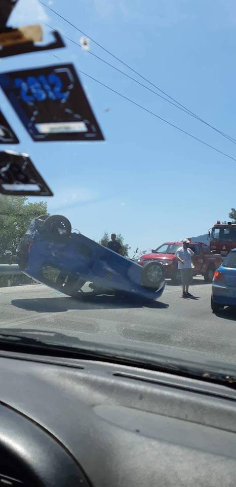 Από το τροχαίο, τα αίτια του οποίου είναι ακόμα άγνωστα, αναποδογύρισε το ένα από τα δύο οχήματα.
