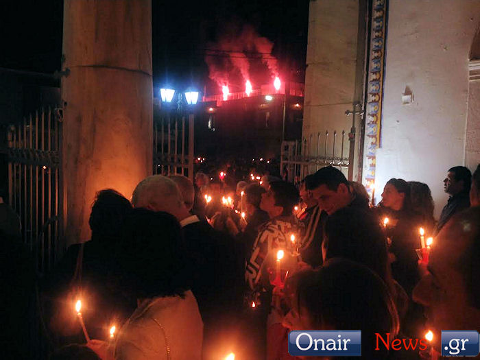 Αφού άναψαν οι λαμπάδες με το Άγιο Φως, μεγάλοι και παιδιά στάθηκαν στα προαύλια των Ναών, γύρω από τους ιερείς και τους ψάλτες, και με τους πρώτους Αναστάσιμους ήχους και τις πανηγυρικές κωδωνοκρουσίες, έψαλαν όλοι μαζί.