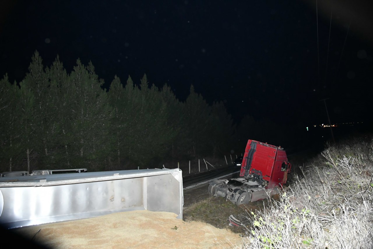 Ανατροπή φορτηγού που μετέφερε σιτηρά σημειώθηκε το απόγευμα της Τετάρτης (11/1) στη Λάρισα.