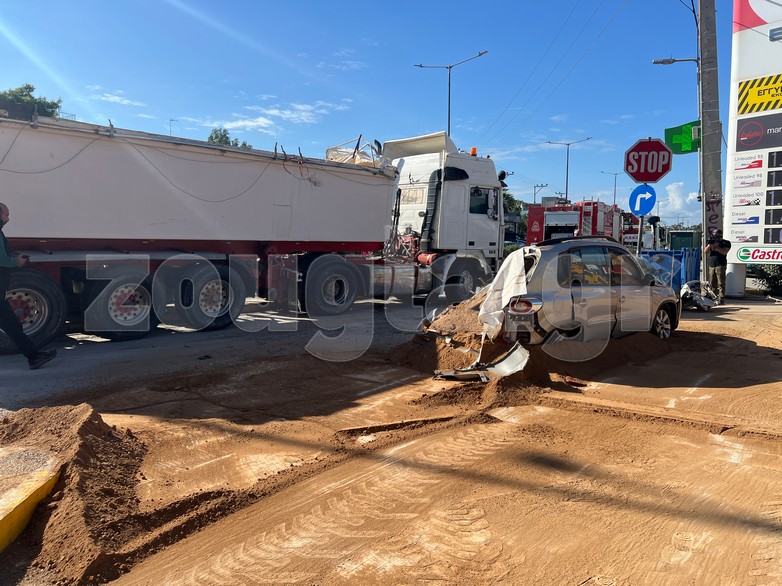 Η νταλίκα μετέφερε χώμα και το περιστατικό συνέβη μπροστά από πρατήριο υγρών καυσίμων, προκαλώντας αναστάτωση.
