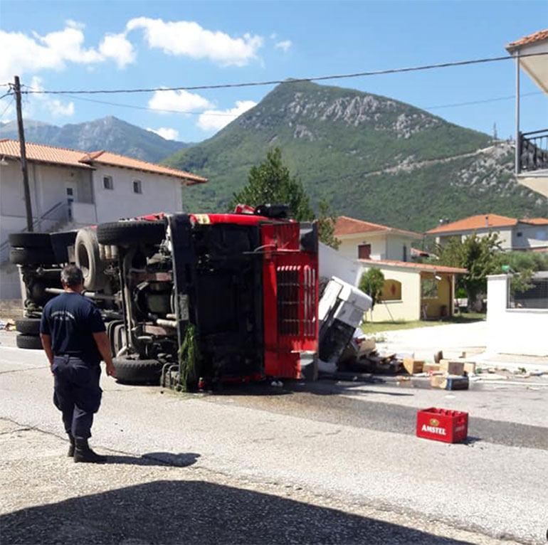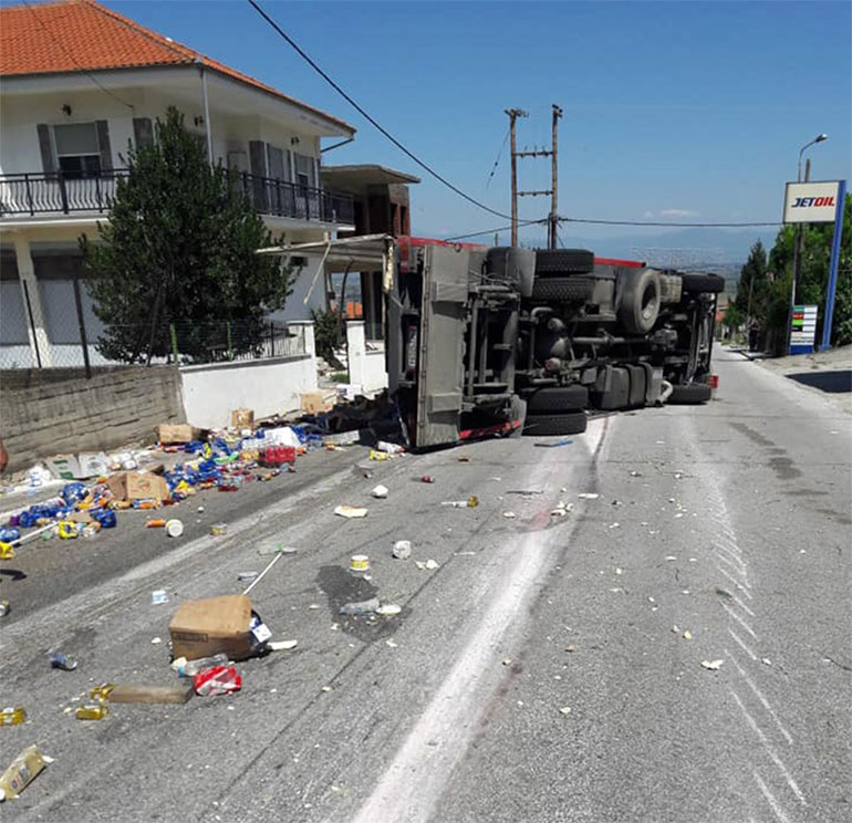 Ένα φορτηγό το οποίο μετέφερε εμπορεύματα ανετράπη το μεσημέρι της Δευτέρας (13/8) στον Άγιο Χριστόφορο Καβάλας.