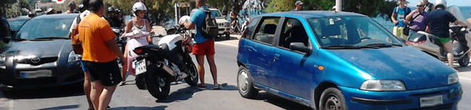 Κάτω από αδιευκρίνιστες μέχρι στιγμής συνθήκες, μία μηχανή μεγάλου κυβισμού προσέκρουσε σε προπορευόμενο όχημα με αποτέλεσμα μία νεαρή κοπέλα η οποία ήταν συνεπιβάτης στη μηχανή να εκτιναχθεί και να προσγειωθεί επάνω στον ουρανό του ΙΧ αυτοκινήτου.