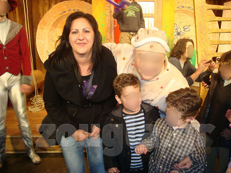 (Η Ευσταθία Χαρατσή με το παιδί της και έναν φίλο του)