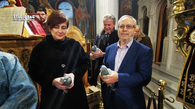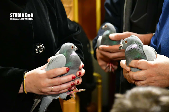 Στον Ιερό Ναό της Ευαγγελίστριας στο Ναύπλιο, αναβίωσε και φέτος το έθιμο των περιστεριών στην τελετή του Αγιασμού των υδάτων την Δευτέρα 6 Ιανουαρίου 2020.