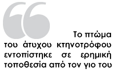 Οι ίδιες πηγές αναφέρουν ότι ο τελευταίος άνθρωπος που είδε τον κτηνοτρόφο ζωντανό ήταν ένας υπάλληλος βενζινάδικου της περιοχής γύρω στις 18.45 το απόγευμα.