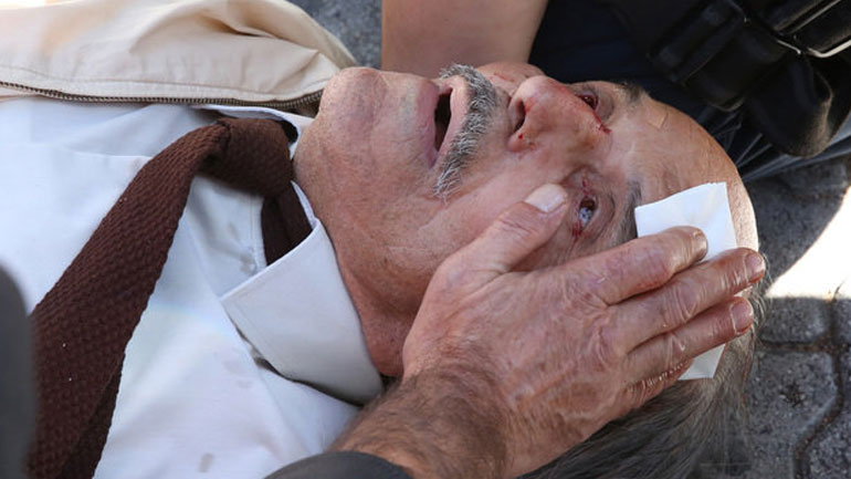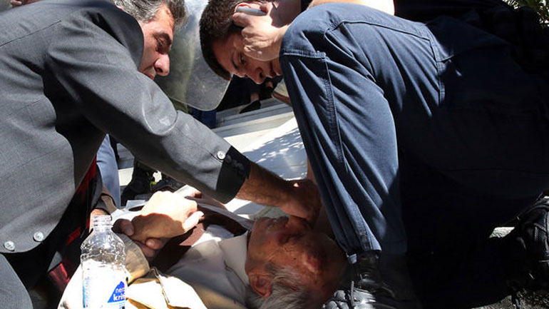 Σύμφωνα με το φωτογραφικό υλικό από το περιστατικό που δημοσίευσε το Αθηναϊκό Πρακτορείο ο ηλικιωμένος φαίνεται να έχει τραυματιστεί στο κεφάλι και το χέρι του, ενώ δείχνει φανερά σοκαρισμένος.