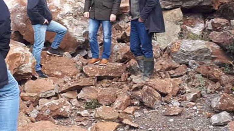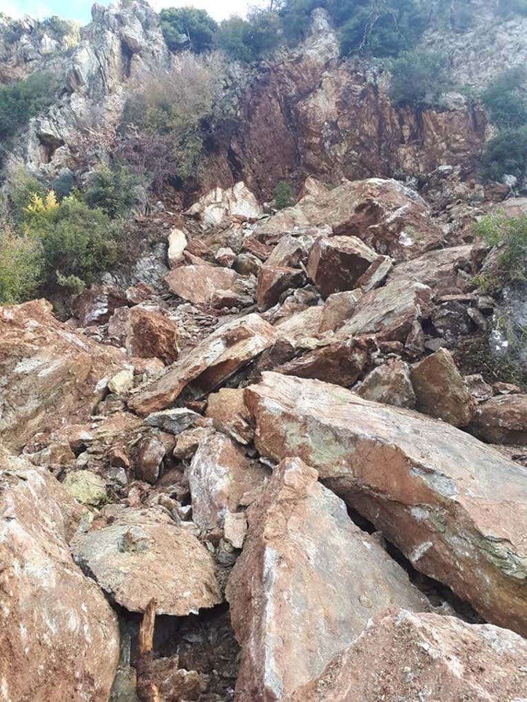 Σύμφωνα με πληροφορίες χθες το απόγευμα, μεγάλοι βράχοι κύλησαν από την πλαγιά και απειλήθηκαν δύο σπίτια.