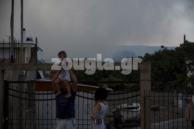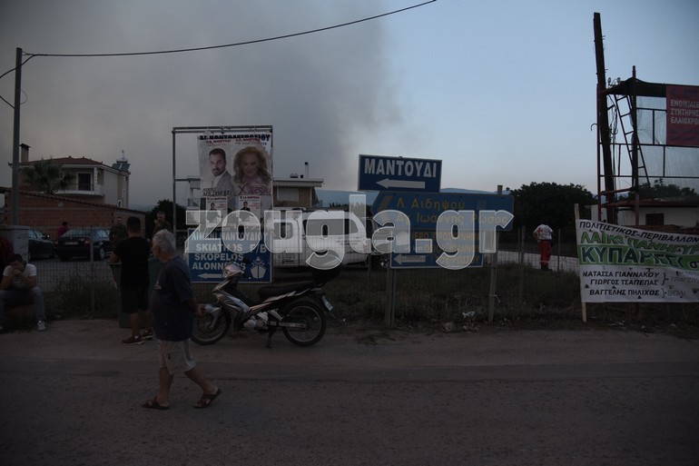 Οι καπνοί έχουν σκεπάσει τον ουρανό της ευρύτερης περιοχής και φτάνουν και μέχρι τα Ψαχνά, ενώ την ίδια στιγμή η πυροσβεστική αυξάνει συνεχώς τη δύναμη της.