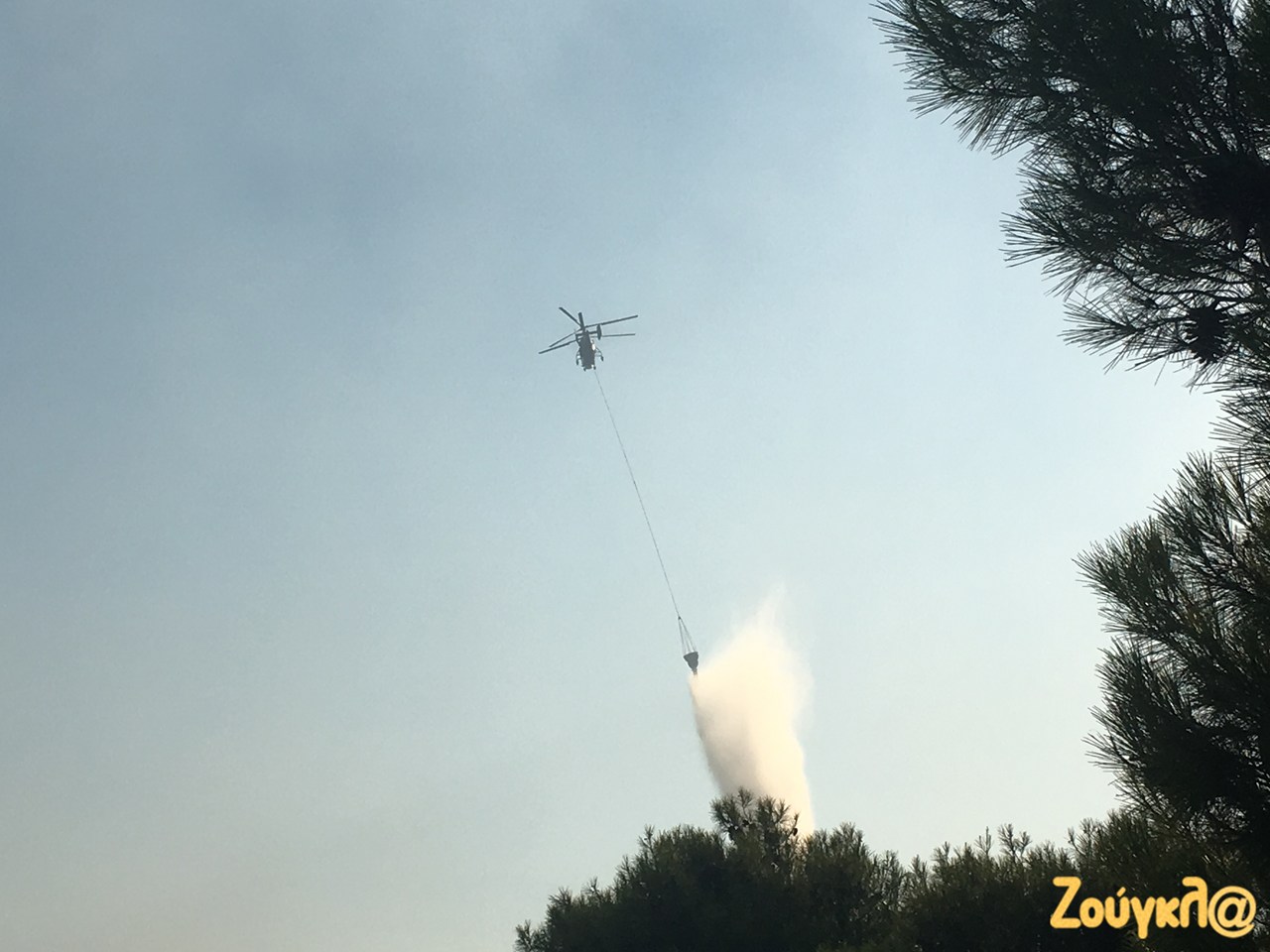 Συνεχίζονται οι ρίψεις νερού από τα εναέρια μέσα