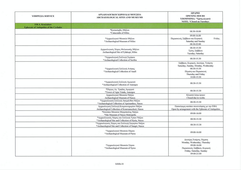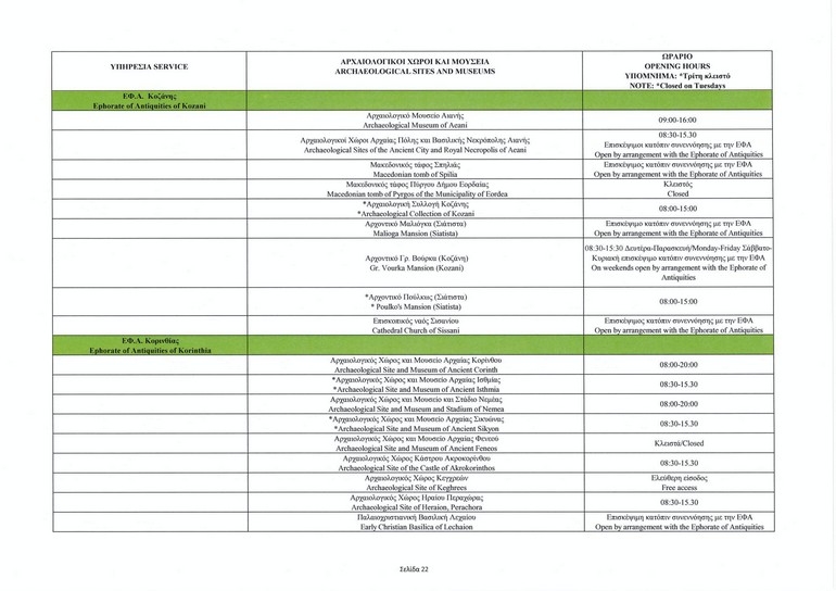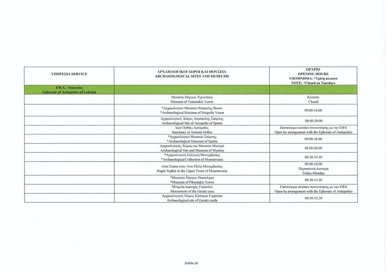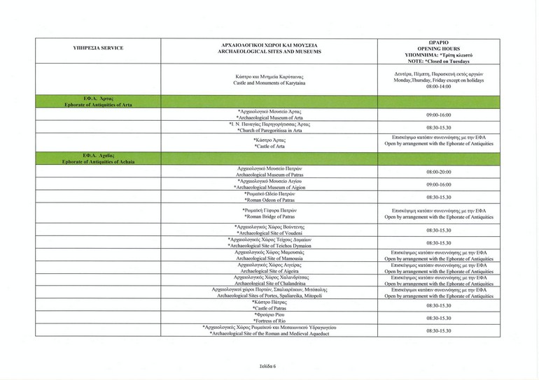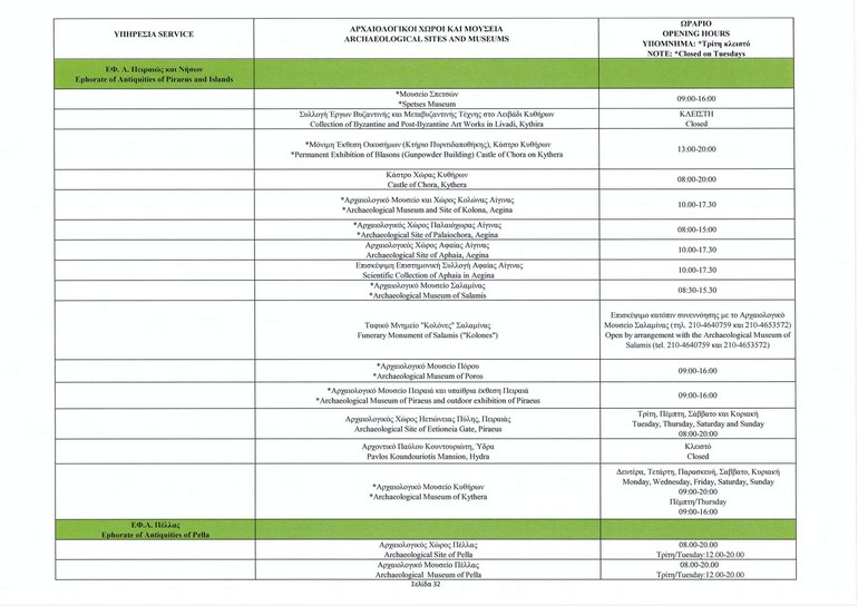 Δείτε το ωράριο όλων των αρχαιολογικών χώρων: