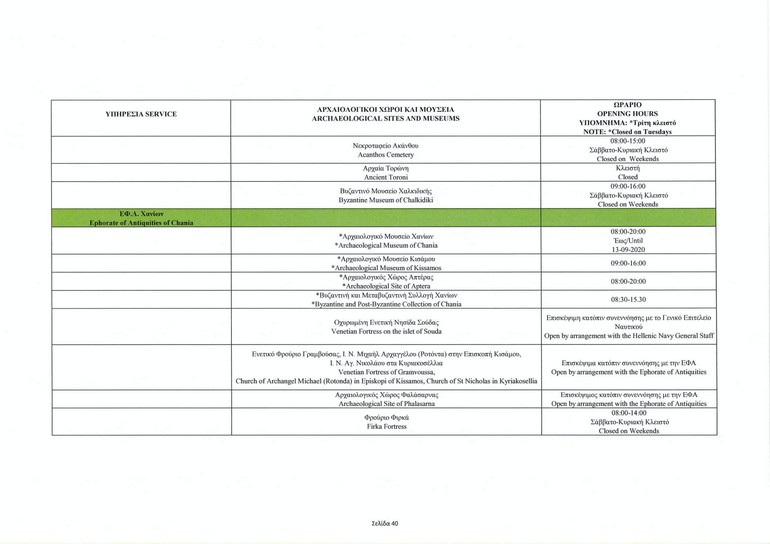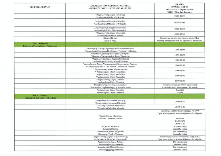 Όσον αφορά στο Ταμείο Αρχαιολογικών Πόρων (ΤΑΠΑ), ανακοινώνεται ότι το ΤΑΠΑ «έχει αποστείλει οδηγίες για τη λειτουργία των πωλητηρίων (με αναλογική εφαρμογή των όσων ισχύουν για τη λειτουργία των καταστημάτων λιανικής πώλησης), καθώς επίσης και σχετικό υγειονομικό υλικό, όπως και εξοπλισμό ατομικής προστασίας για τους εργαζομένους. Έχει διασφαλιστεί η επάρκεια προσωπικού και πωλητέων ειδών για όλη τη θερινή περίοδο. Σχετικά με τη λειτουργία των αναψυκτηρίων εντός των αρχαιολογικών χώρων προτείνεται στους ιδιώτες εκμισθωτές η λειτουργία τους με τη μορφή take – away, σύμφωνα και με τις γενικές οδηγίες που έχουν δοθεί από τις αρμόδιες υπηρεσίες. Από την ημερομηνία που θα καθορισθεί η επαναλειτουργία των καταστημάτων υγειονομικού ενδιαφέροντος (έχει ανακοινωθεί η 1η Ιουνίου 2020), τα αναψυκτήρια των αρχαιολογικών χώρων θα μπορούν να λειτουργούν, σύμφωνα με τις σχετικές οδηγίες που θα δοθούν. Το σύστημα έκδοσης ηλεκτρονικού εισιτηρίου θα λειτουργήσει κανονικά. Ο διαδικτυακός τόπος έκδοσης είναι: https://etickets.tap.gr/», καταλήγει η ανακοίνωση του ΥΠΠΟΑ.