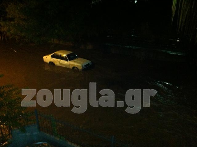(Πλημμυρισμένοι οι δρόμοι στο Μοσχάτο – φωτό: αναγνώστης)