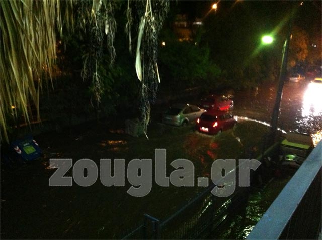 (Φωτό αναγνώστη: Πλημμύρισε η οδός Δ. Δαμάσκου στο Μενίδι, παρόλα αυτά, οι κάτοικοι το διασκεδάζουν)