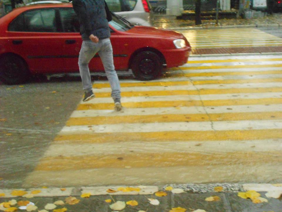Τα νερά κατέβαιναν ορμητικά και το ένα ρεύμα γρήγορα πλημμύρισε με αποτέλεσμα τα νερά να κατακλύσουν τα πεζοδρόμια και να τα μετατρέψουν σε αδιάβατα.