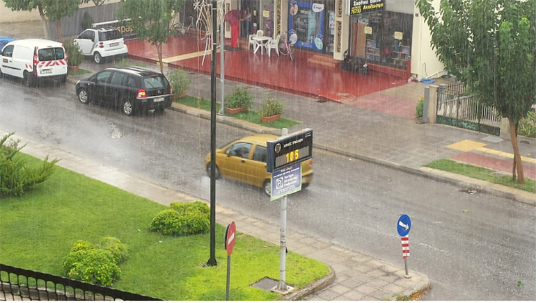 Ισχυρή βροχόπτωση έπληξε το απόγευμα της Παρασκευής την πόλη των Τρικάλων, με τα ακραία καιρικά φαινόμενα να επεκτείνονται στο σύνολο του νομού.