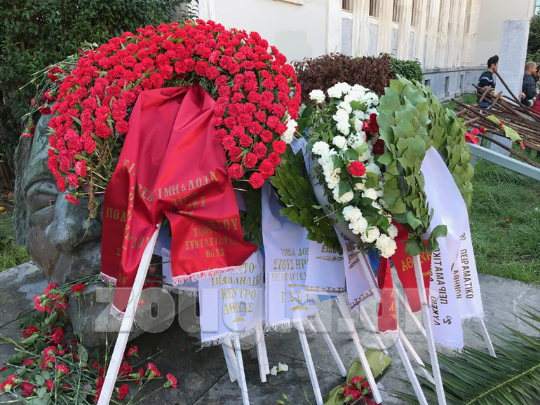 Σήμερα αρκετοί πολίτες βρέθηκαν στο Πολυτεχνείο και κατέθεσαν στεφάνια.