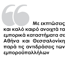 Με εκπτώσεις και καλό καιρό ανοιχτά τα εμπορικά καταστήματα στη Θεσσαλονίκη