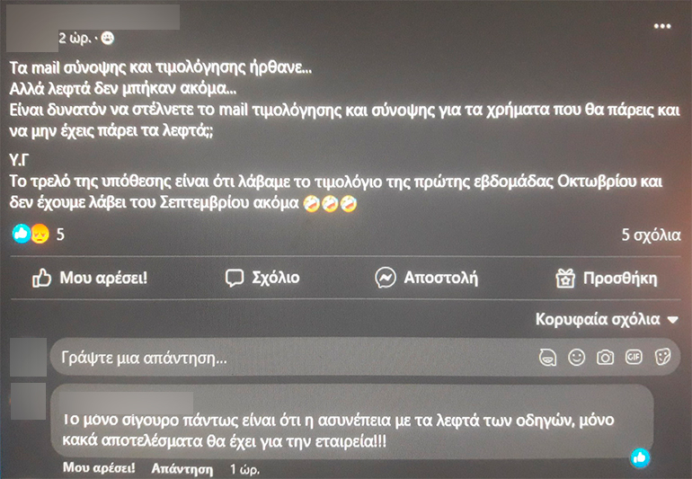 Δύο εβδομάδες μετά, τα χρήματα από τις διαδρομές που πραγματοποιήθηκαν με τη Free Now δεν έχουν κατατεθεί στους λογαριασμούς των οδηγών, αλλά βρίσκονται στα χέρια της εταιρίας. Μάλιστα, κατά τις τελευταίες μέρες, σύμφωνα με μαρτυρίες οδηγών, αρκετοί έχουν δει να εξαφανίζεται το υπόλοιπό τους από την πλατφόρμα.