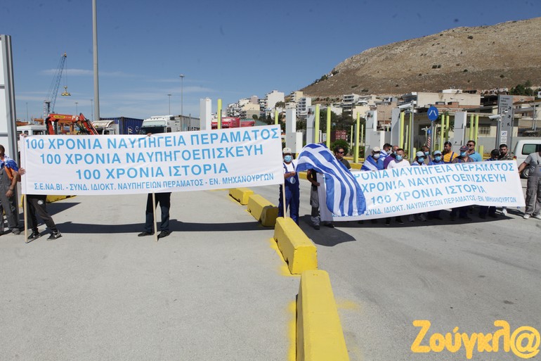 Συγκέντρωση διαμαρτυρίας πραγματοποίησαν οι εργαζόμενοι στη ναυπηγοεπισκευαστική ζώνη Περάματος οι οποίοι αντιδρούν στη δημιουργία ναυπηγείου από τον ΟΛΠ, έπειτα από απόφαση του ΣτΕ.