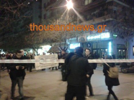 Οι διαδηλωτές συγκεντρώθηκαν στις 18.00 η ώρα στην Καμάρα και βρίσκονται τη στιγμή στην Αγίου Δημητρίου όπου ισχυρές αστυνομικές δυνάμεις και ΜΑΤ τους εμποδίζουν από το να πλησιάσουν στο προξενείο.