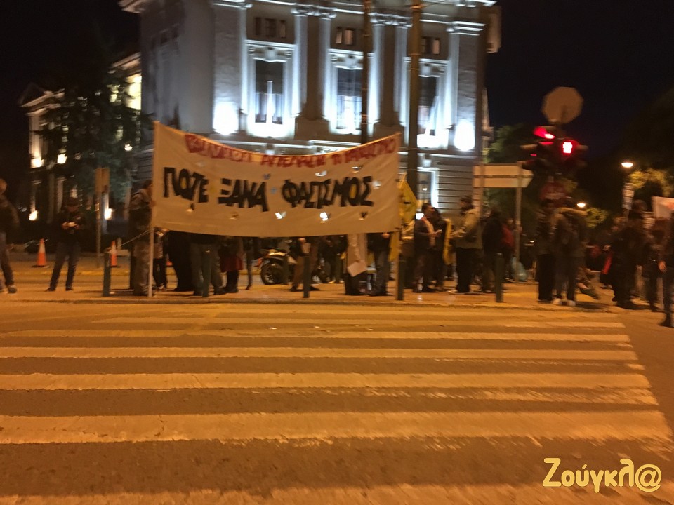 Οι συγκεντρωμένοι κινήθηκαν επί της Β. Σοφίας κατευθυνόμενοι προς τα γραφεία του ακροδεξιού κόμματος στην Λ. Μεσογείων.