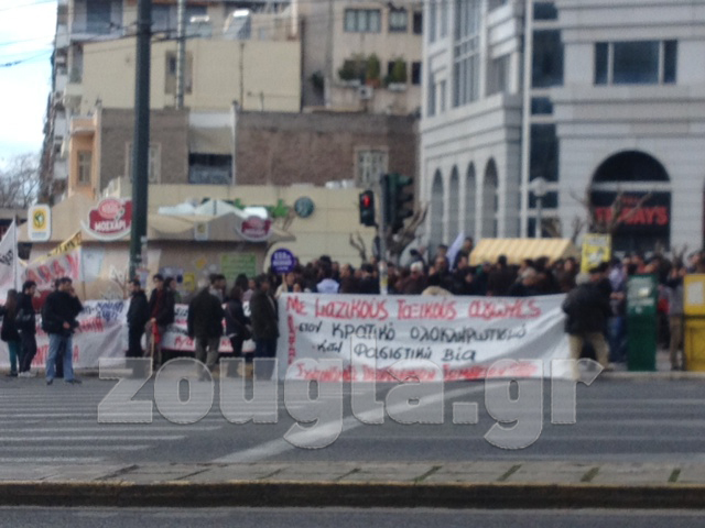 Οι συγκεντρωμένοι έκαναν πορεία και επιχείρησαν να κατευθυνθούν προς τα νέα γραφεία της Χρυσής Αυγής, κοντά στη στάση του μετρό «Κατεχάκη», όμως στη συμβολή των οδών Μεσογείων και Αρκαδίας (σ.σ.: μερικά μόλις μέτρα μακριά από τα γραφεία της Χρυσής Αυγής) οι αστυνομικοί τους σταμάτησαν. Η πορεία ολοκληρώθηκε λίγο μετά τις 15.30 το μεσημέρι μπροστά από την εκκλησία του Αγίου Δημητρίου στην Πανόρμου.