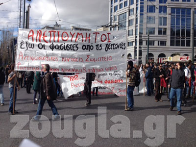 Περίπου 600 μέλη αντιρατσιστικών οργανώσεων, φοιτητικών συλλόγων, λαϊκών συνελεύσεων αλλά και πολιτικών φορέων -ανάμεσά τους ο ΣΥΡΙΖΑ και η ΑΝΤΑΡΣΥΑ- συμμετείχαν στην αντιφασιστική – αντιρατσιστική συγκέντρωση που πραγματοποίηθηκε σήμερα το μεσημέρι στη συμβολή των λεωφόρων Κηφισίας και Αλεξάνδρας, ενάντια στο άνοιγμα των νέων γραφείων της Χρυσής Αυγής στη λεωφόρο Μεσογείων.